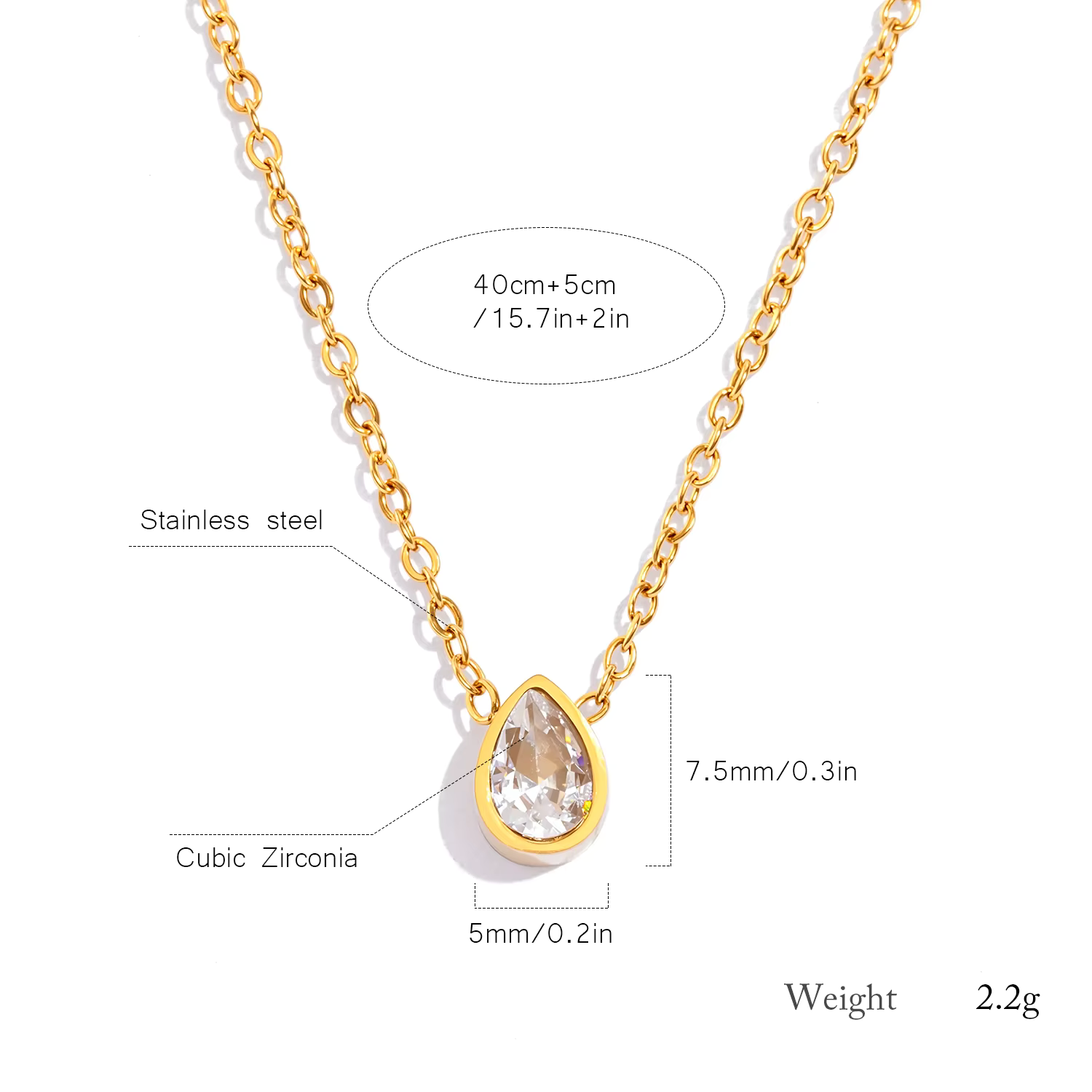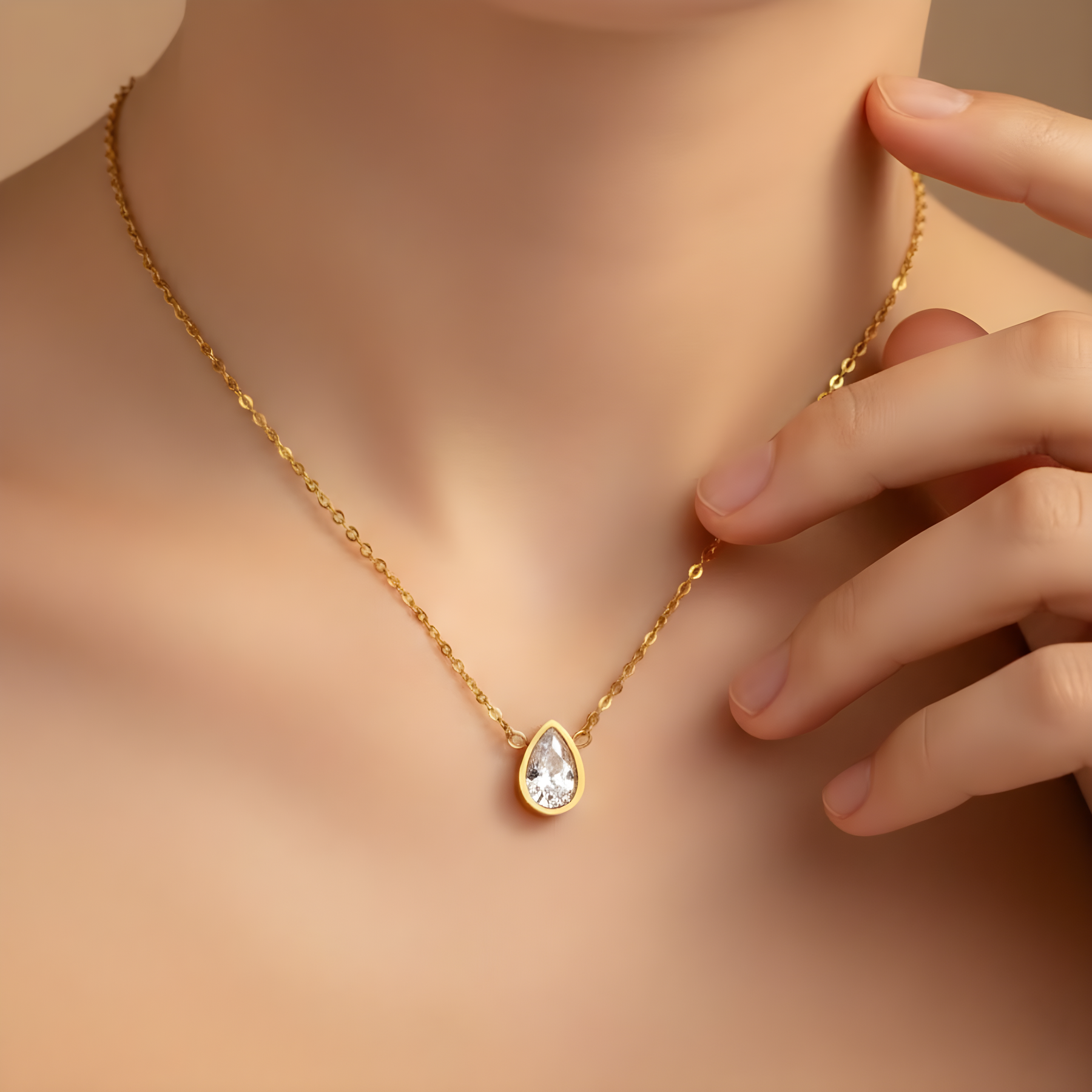 A graceful reflection of timeless beauty, this gold-plated teardrop pendant necklace adds a subtle sparkle to everyday elegance. Featuring a pear-shaped cubic zirconia set in a polished bezel frame, this refined piece catches the light beautifully with every movement.