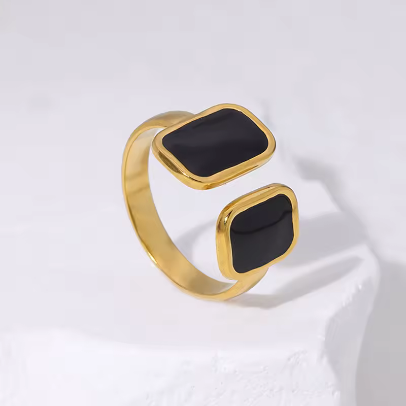 Embrace natural elegance with this Gold Stone Open Ring. Featuring two rectangular stones set in polished gold-tone bezels on an adjustable open band, this minimalist ring combines modern sophistication with nature-inspired beauty.