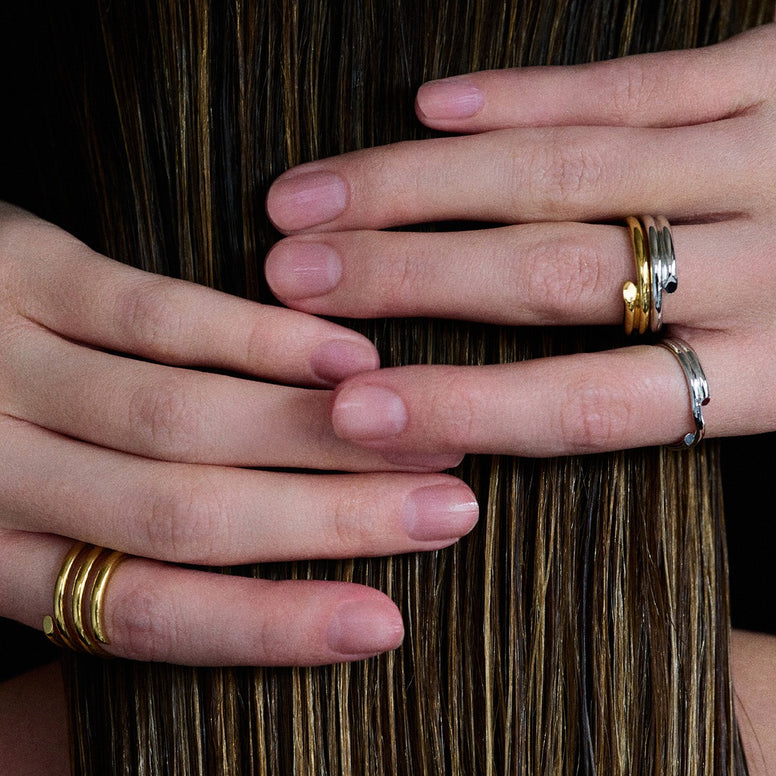 This 18K gold and silver band ring features a classic circular design combined with gold and silver color blocking, perfectly embodying a modern, understated luxury style. Whether for daily commutes, dates, or important occasions, it exudes confidence and elegance, making it the ideal choice for women who appreciate a refined lifestyle.