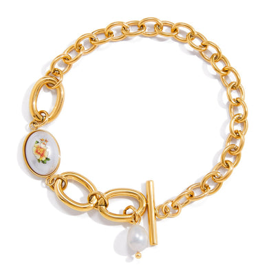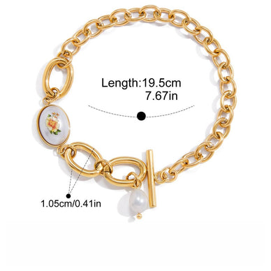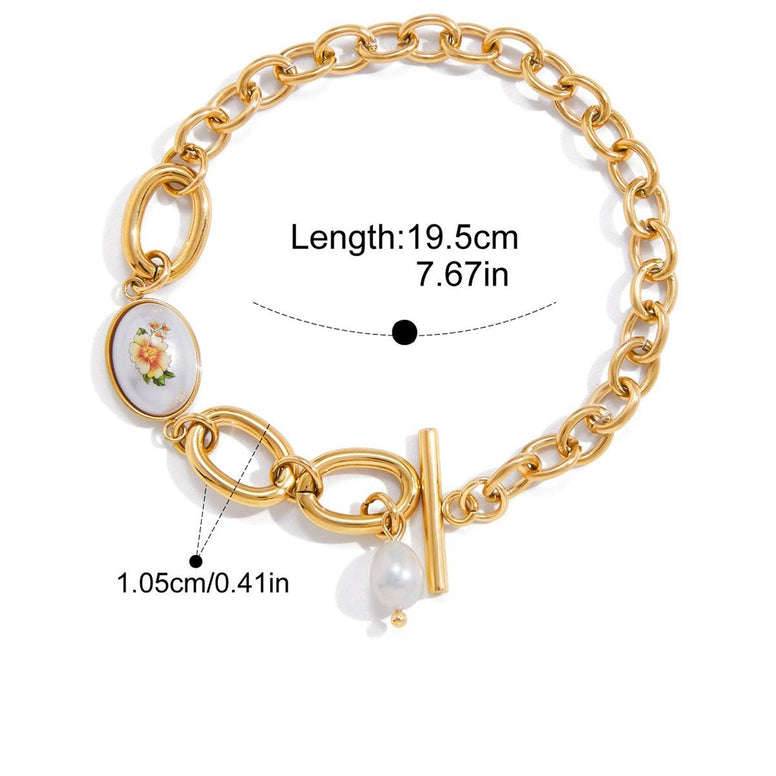 18K Gold Lightweight Luxury Titanium Steel Freshwater Pearl Bracelet