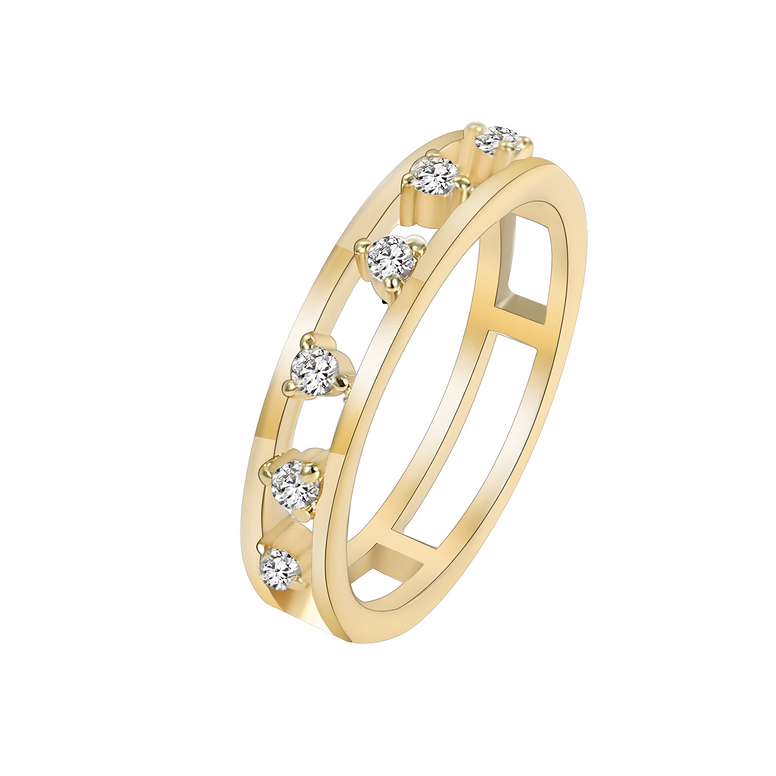 Elevate everyday elegance with Jubris. This gold dainty round stone ring features evenly spaced sparkling stones set in secure prongs along a sleek band minimalist, versatile, and perfect for stacking or wearing beautifully on its own.