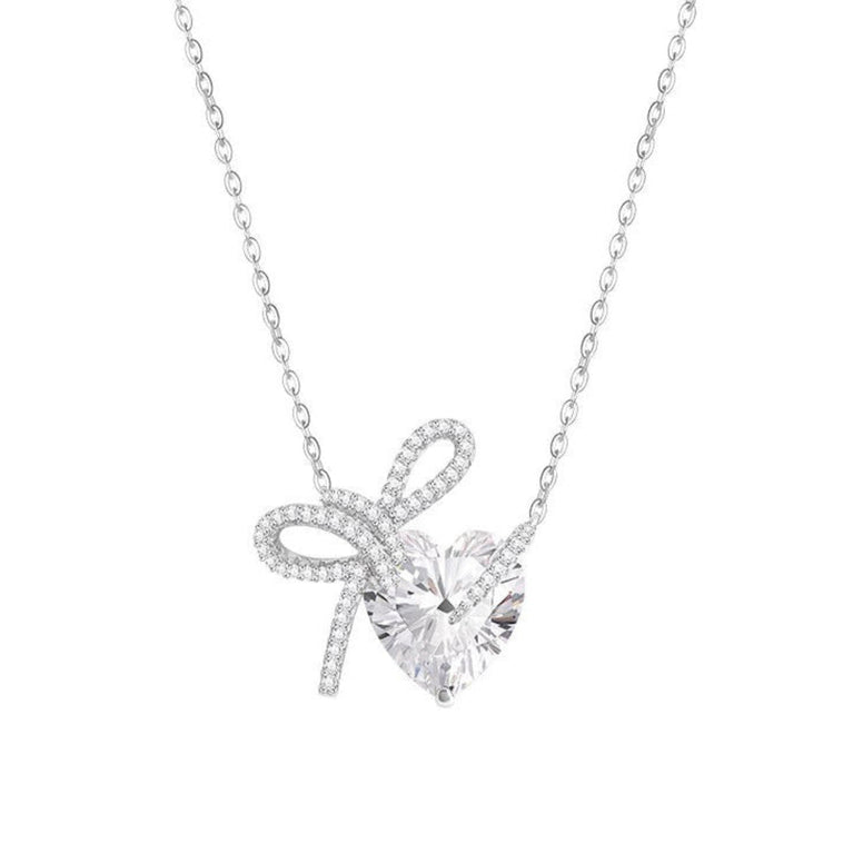 Diamond Bow Heart Necklace
